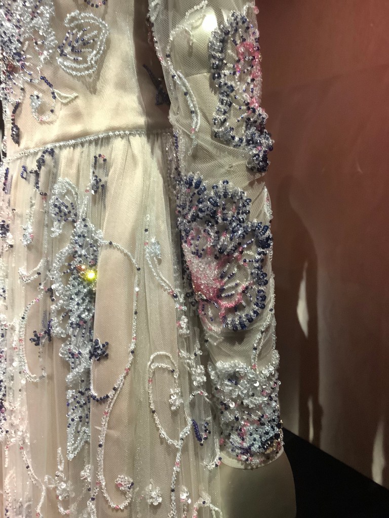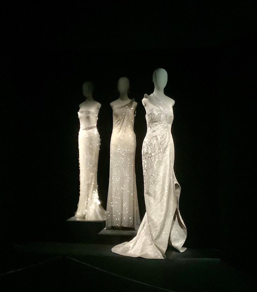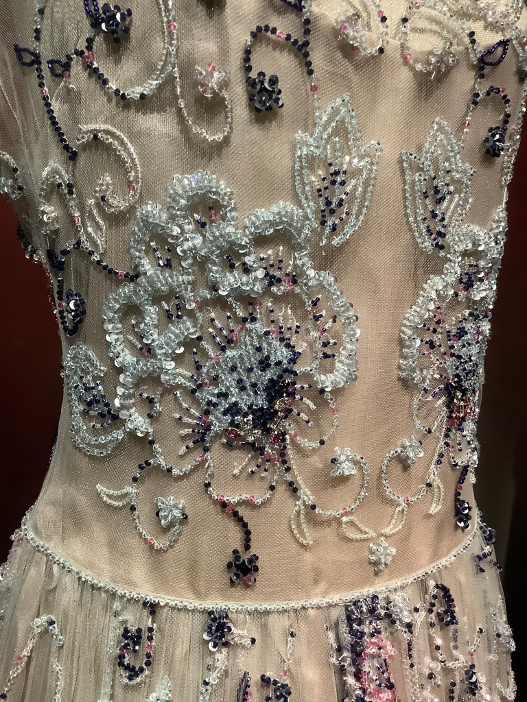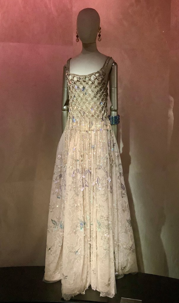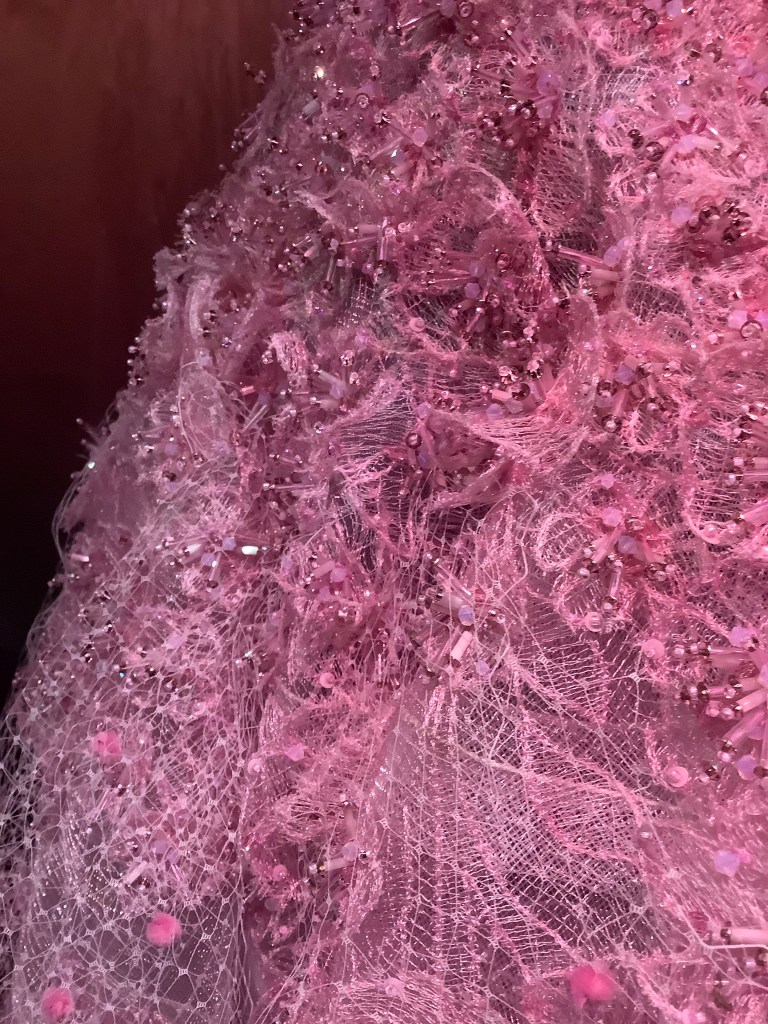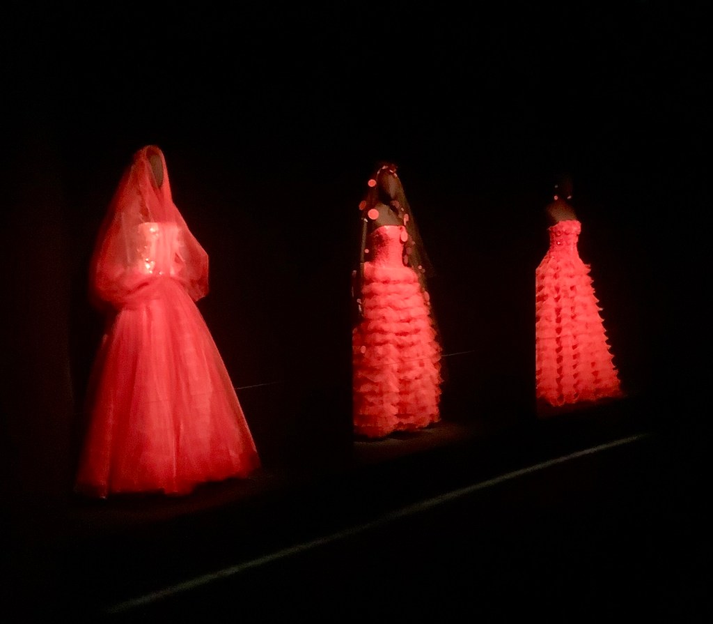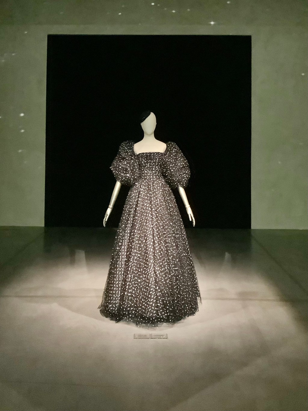 The exhibition showcases 125 breathtaking outfits, displayed across three immersive floors. Darkened rooms with starry projections highlight the intricate embroideries and impeccable craftsmanship—an atmosphere both poetic and serene.